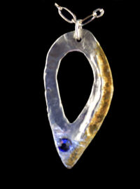 Fine Silver Pendant (99.9%) with 24 K Gold Inlay and 4 MM Blue Swarovski Crystal on an 18 Inch Sterling Silver Chain and a 4 Inch Extender 518