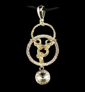 “Circle of Life” Pendant – Silver Multi- Circle Pendant with Large Swarovski Crystal on an 18 Inch Black Leather Cord with 4 Inch Chain Extender 506