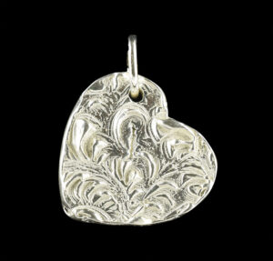 Fine Silver Heart - 5/8 Inches Wide by 1/2 Inches High on 18 Inch Black Leather Cord with a 4 Inch Sterling Silver Chain Extension