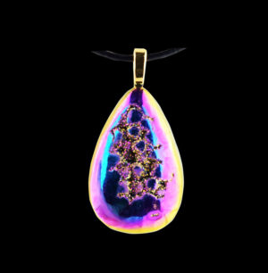 "Northern Lights" - Gorgeous Multi-Color Teardrop Druzy with Sparkling Crystals Deposited in the Druzy on an 18 Inch Black Cord with a 4 Inch Extender