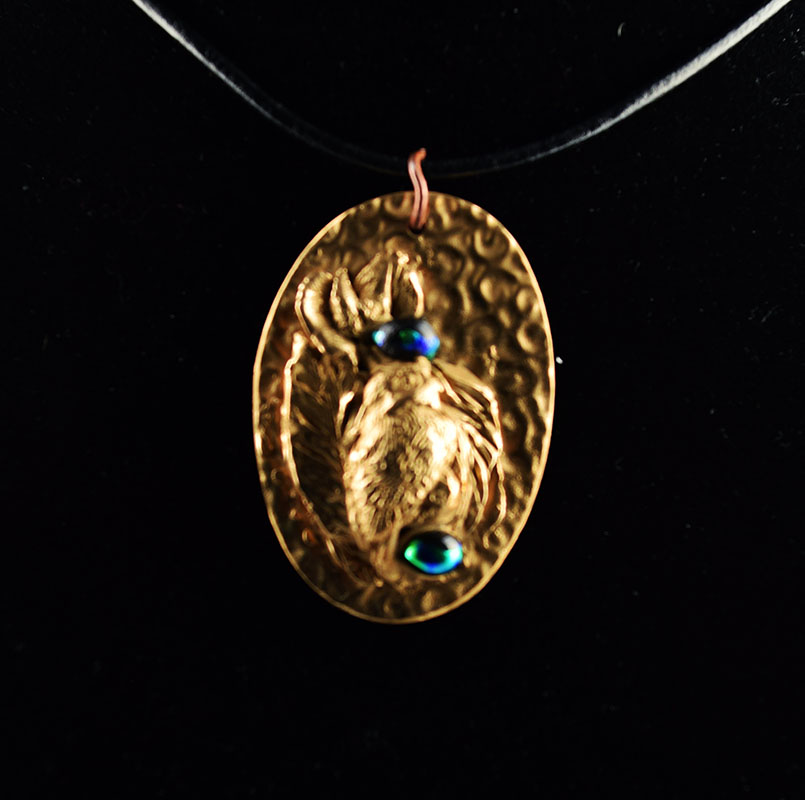 “Partridge in a Pear Tree” – Beautiful Bronze Clay and Swarovski Crystals Polished to High Shine with 18 Inch Black Leather Cord and 4 Inch Extension Makes a Beautiful and Unique Necklace 149