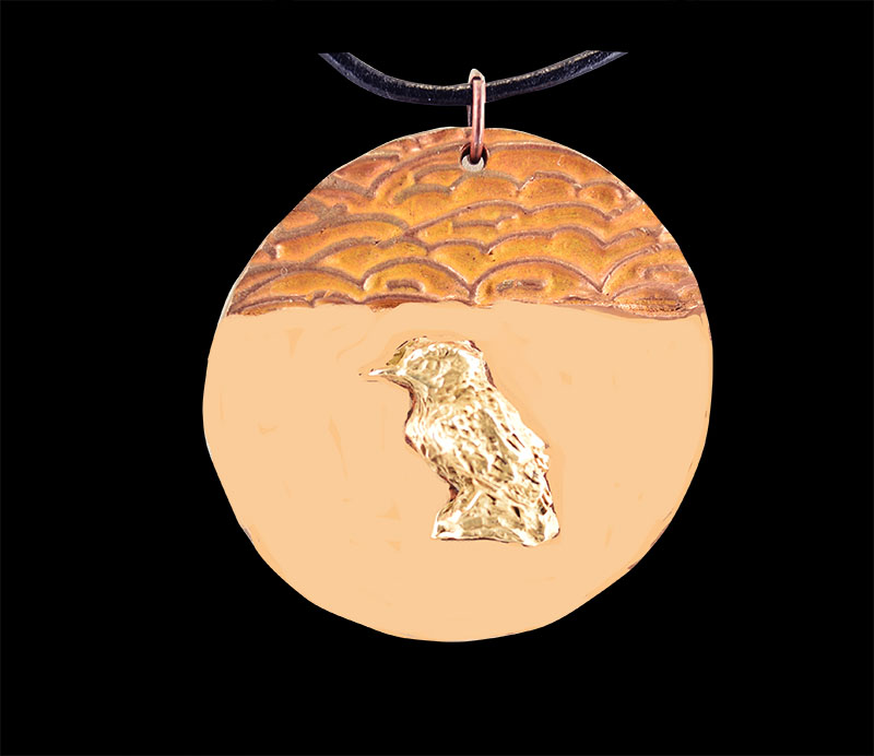 "Red Bronze Bird" Pendant with Bronze Bird on 18 Inch Black Leather Cord and 4 Inch Chain Extender